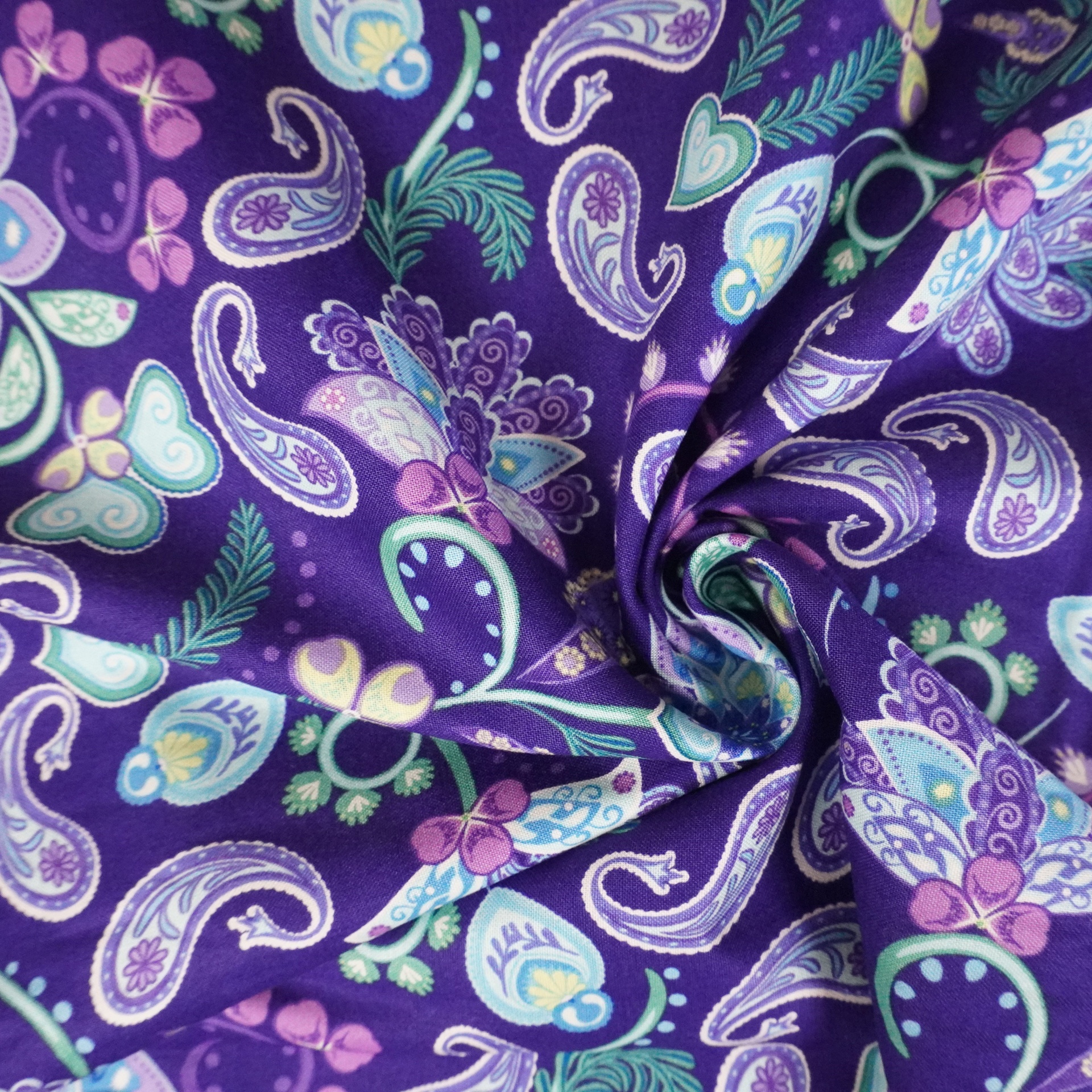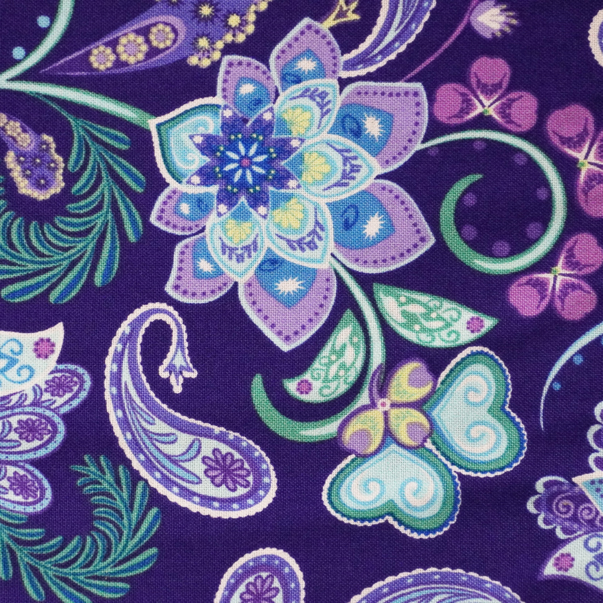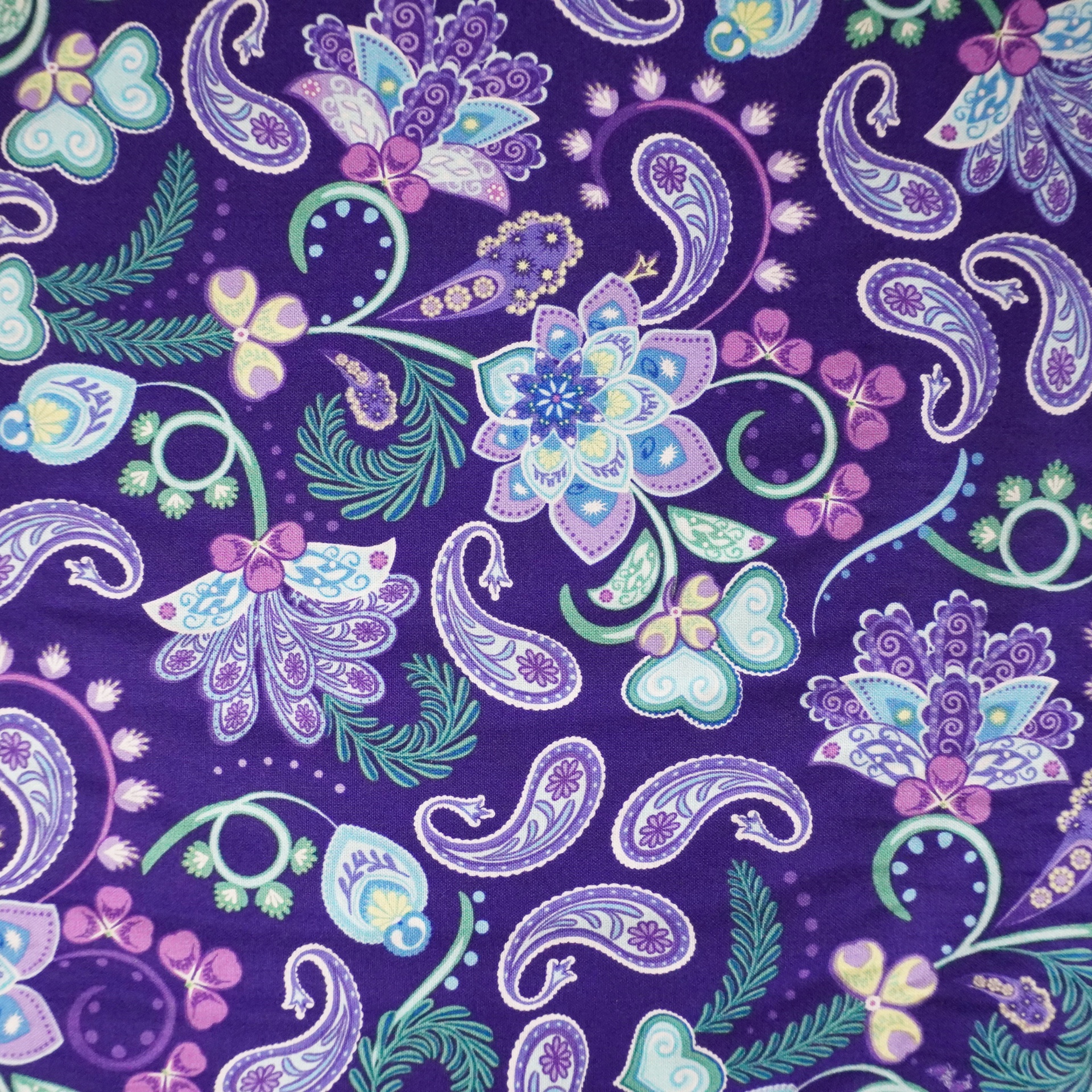 Tecido 100% Algodão Roxo Floral. Colorido e resistente, ideal para costura criativa, patchwork, bolsas e decoração.