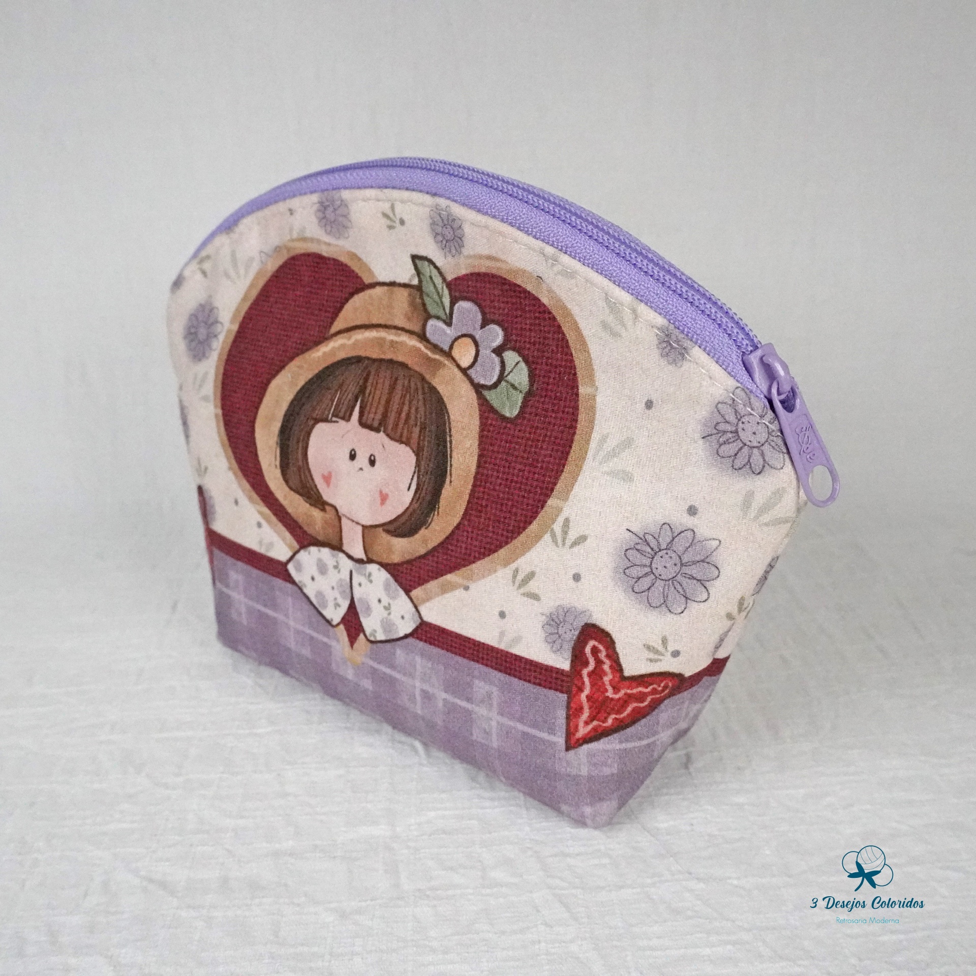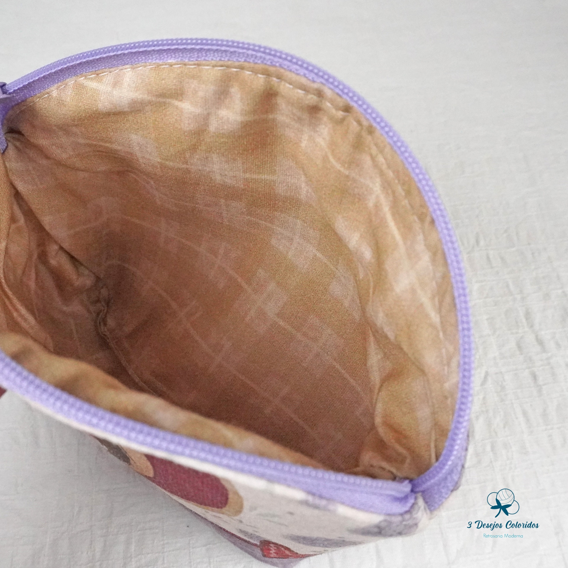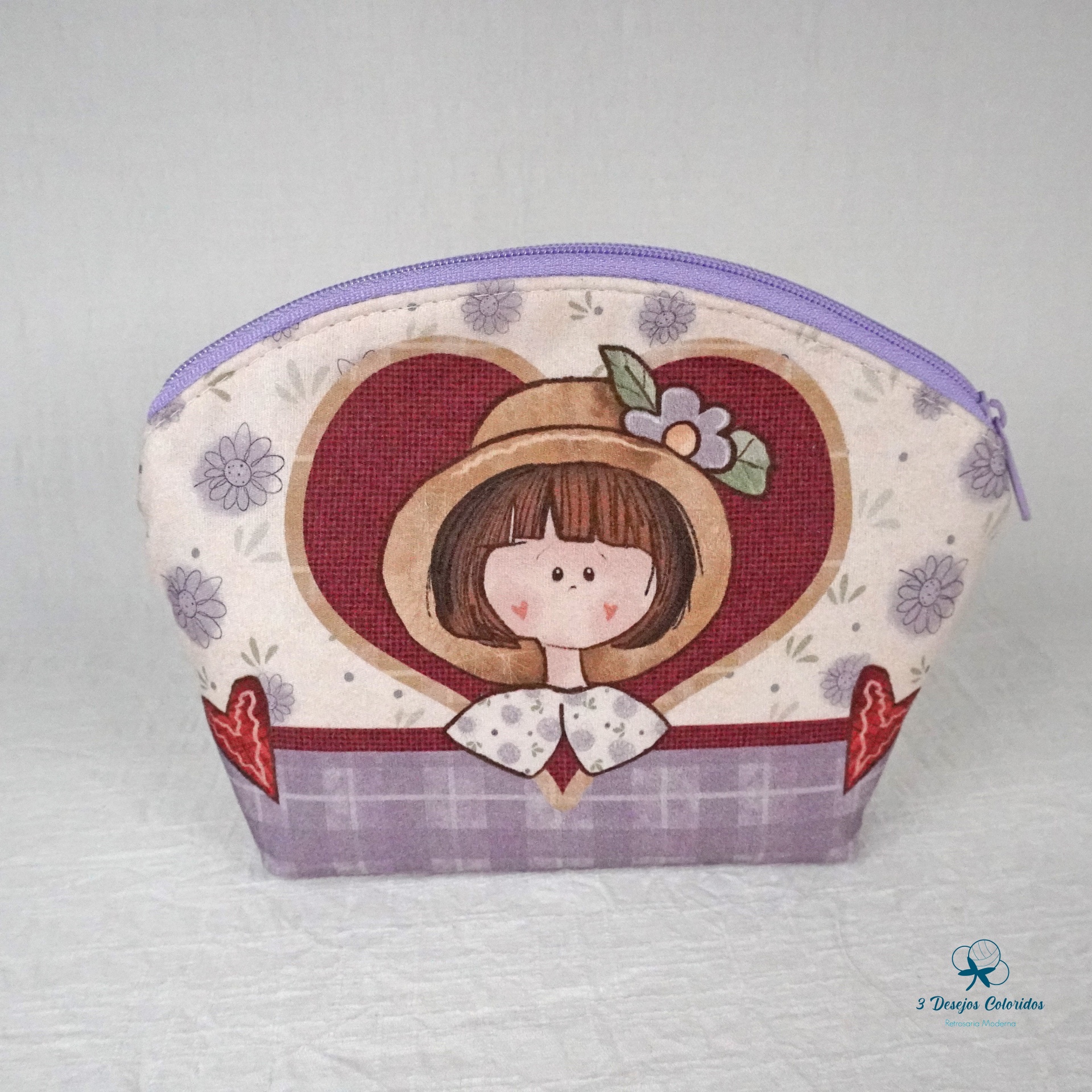 Necessaire 100% algodão digital, feito à mão pela Marisa. Com fecho lilás nº3 e interior forrado em tecido resistente, assegura durabilidade e acabamento de qualidade.