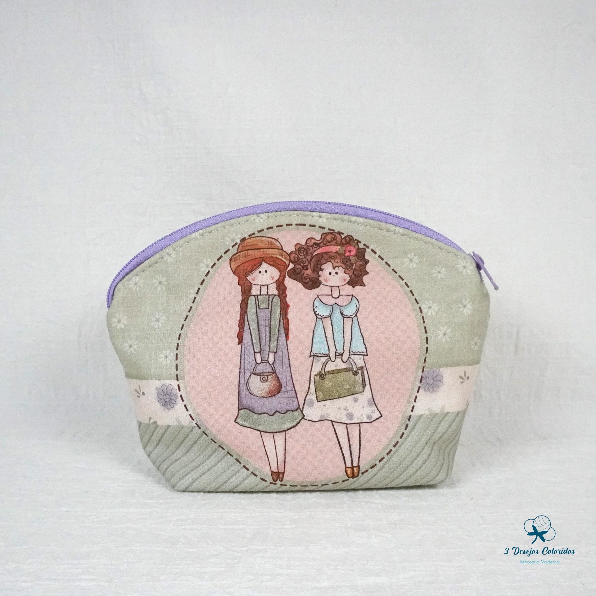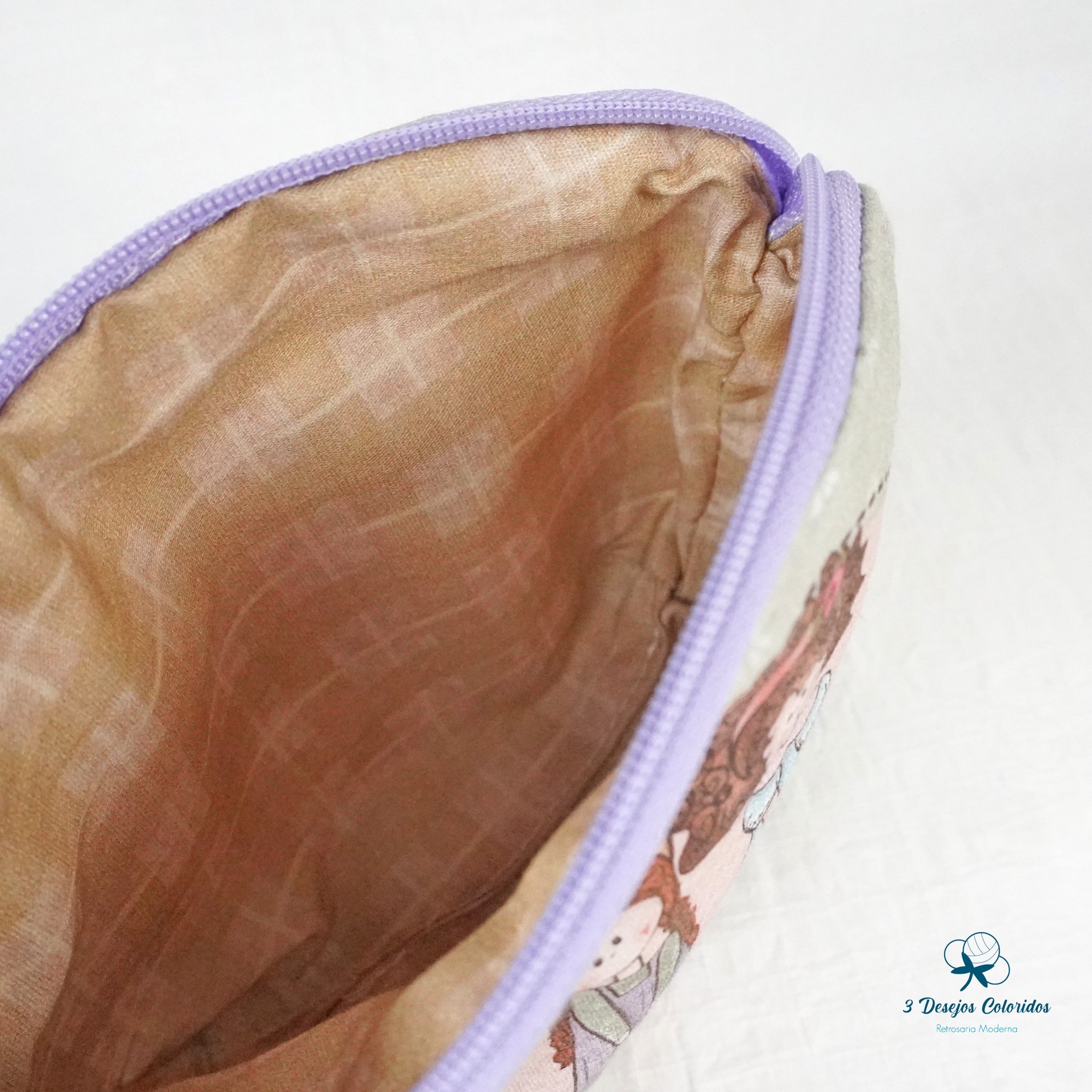 Necessaire 100% algodão digital, feito à mão pela Marisa. Com fecho lilás nº3 e interior forrado em tecido resistente, assegura durabilidade e acabamento de qualidade.