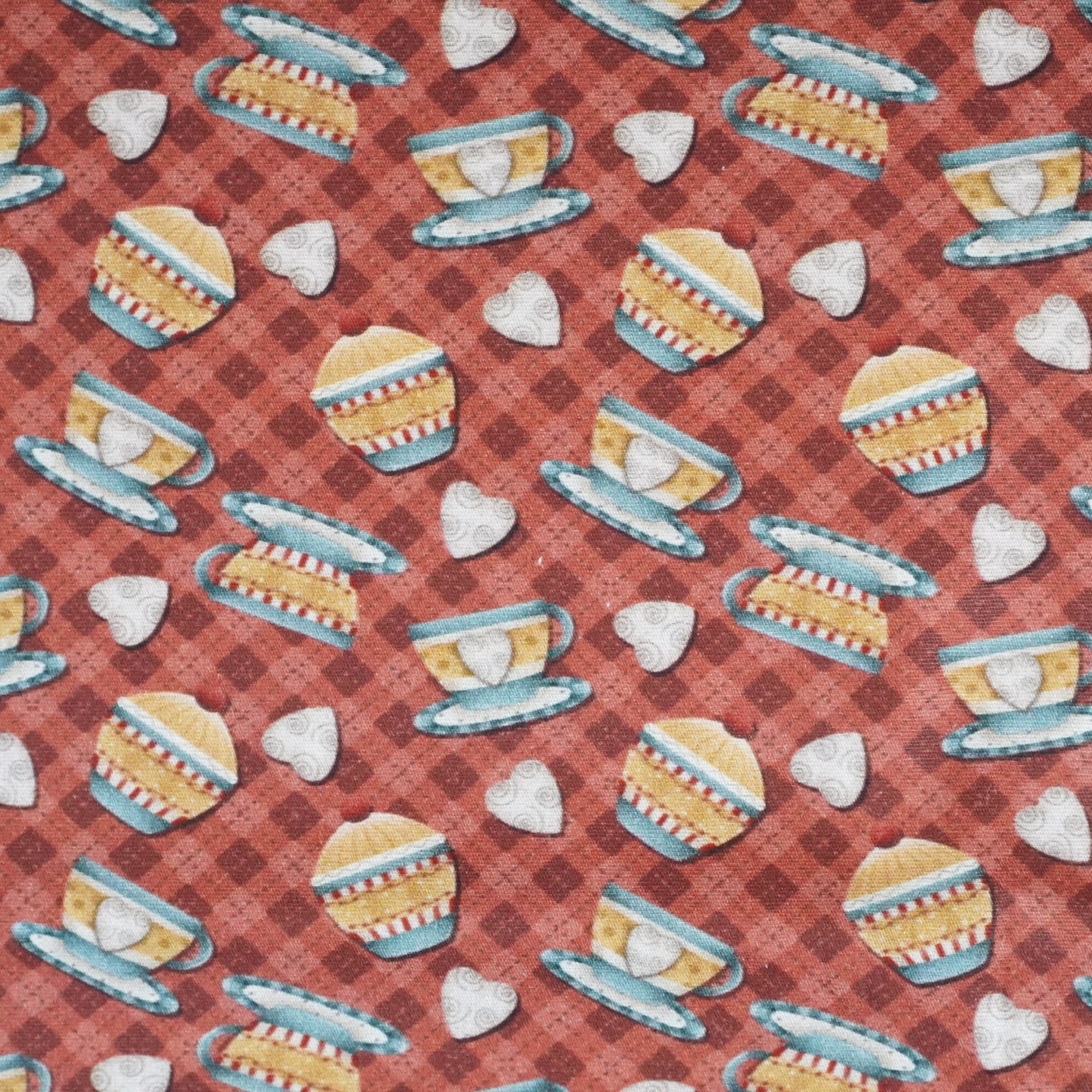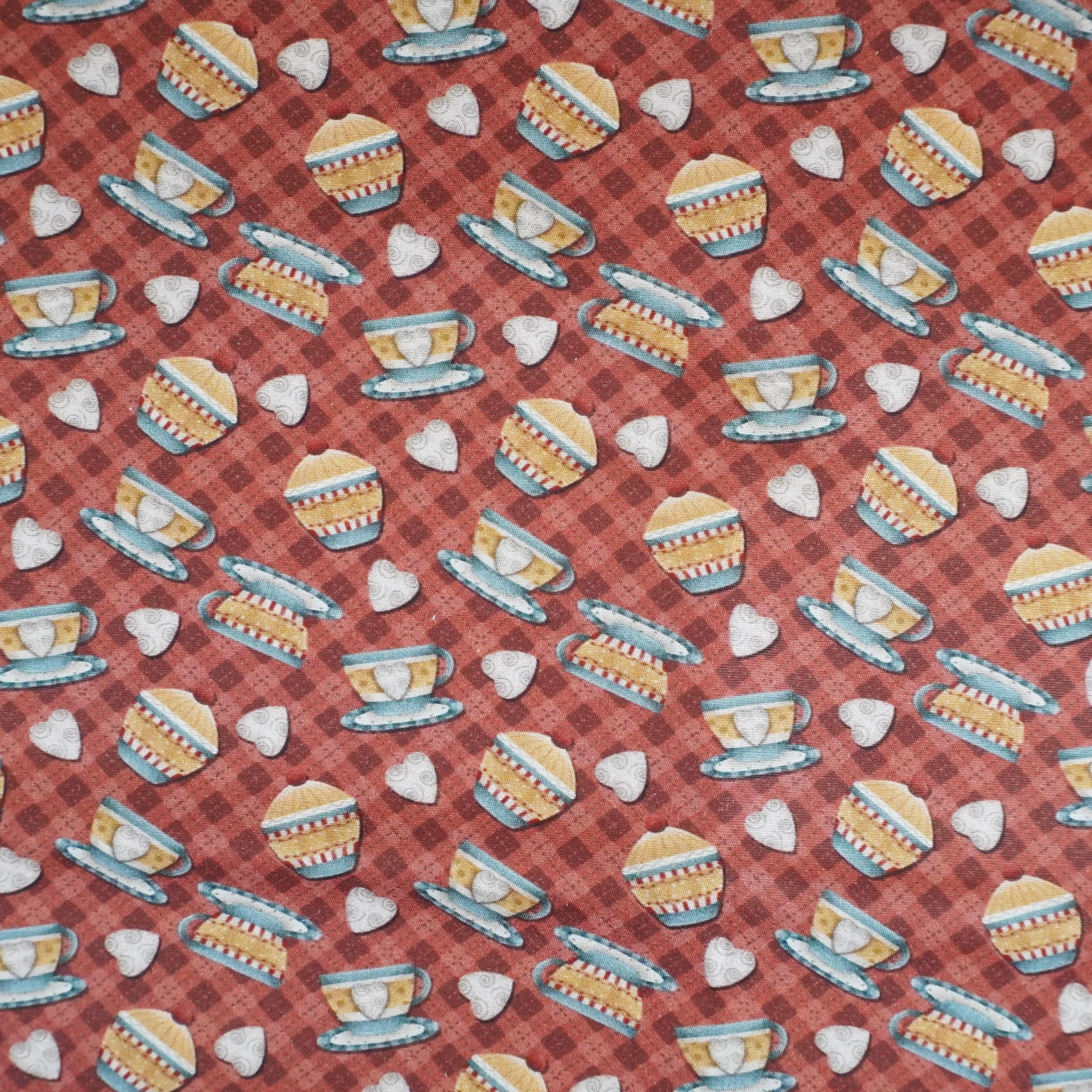 Tecido Fuxicos Amor e Café Xicaras Vinho 150cm