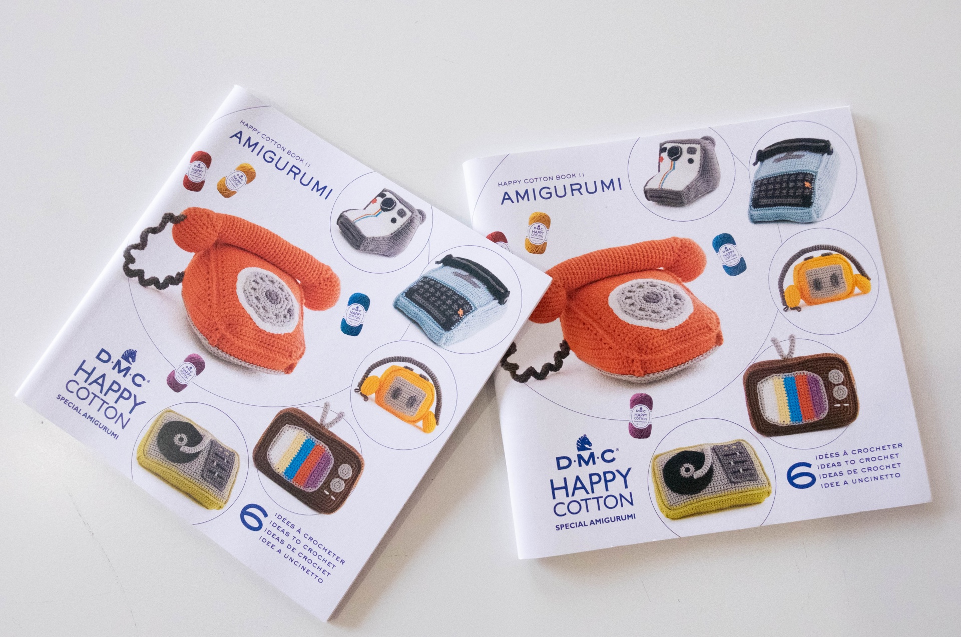 Livro com as receitas dos amigurumis que estão na capa, tem instruções em esquema e por escrito.