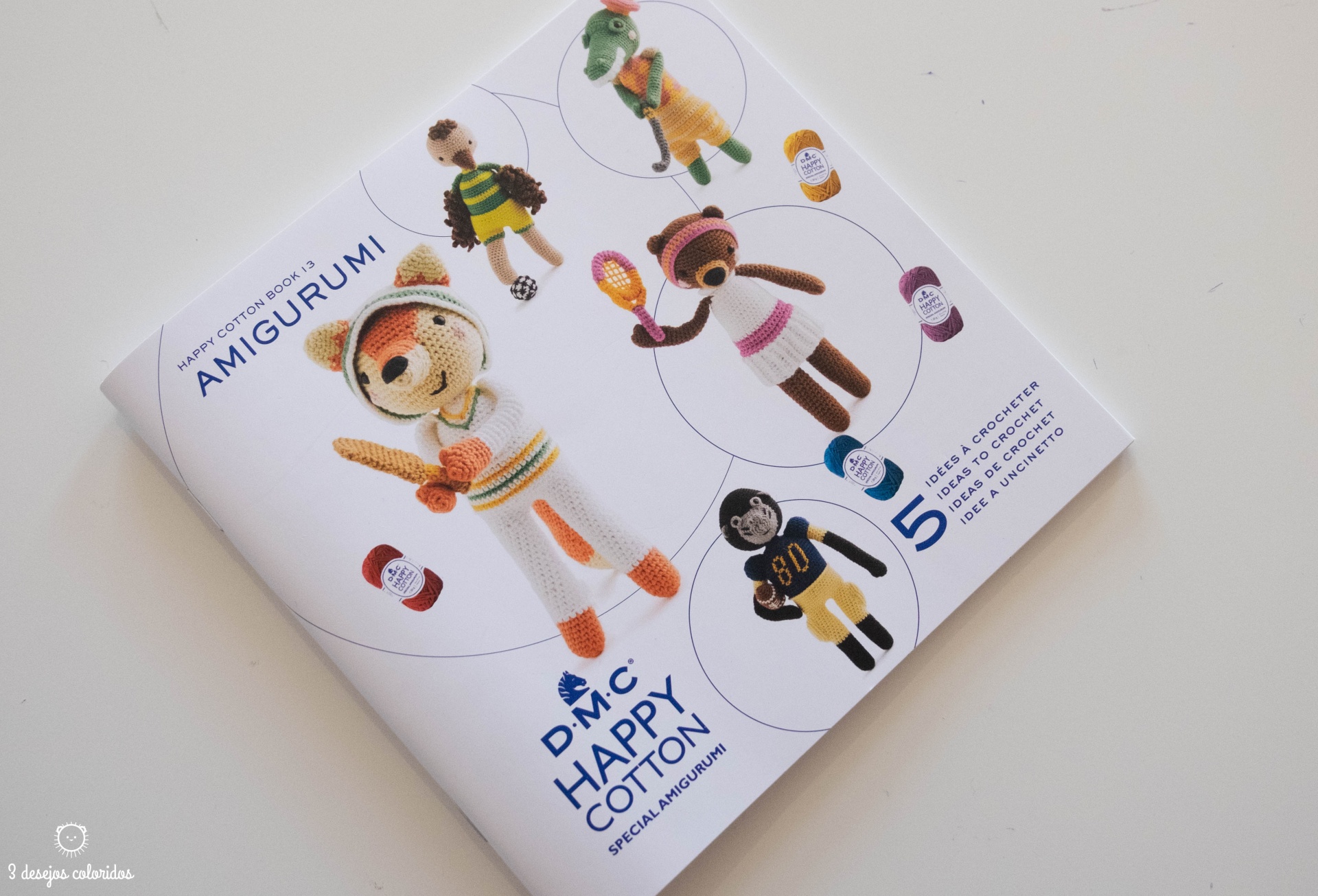 Livro com as receitas dos amigurumis que estão na capa, tem instruções em esquema e por escrito.