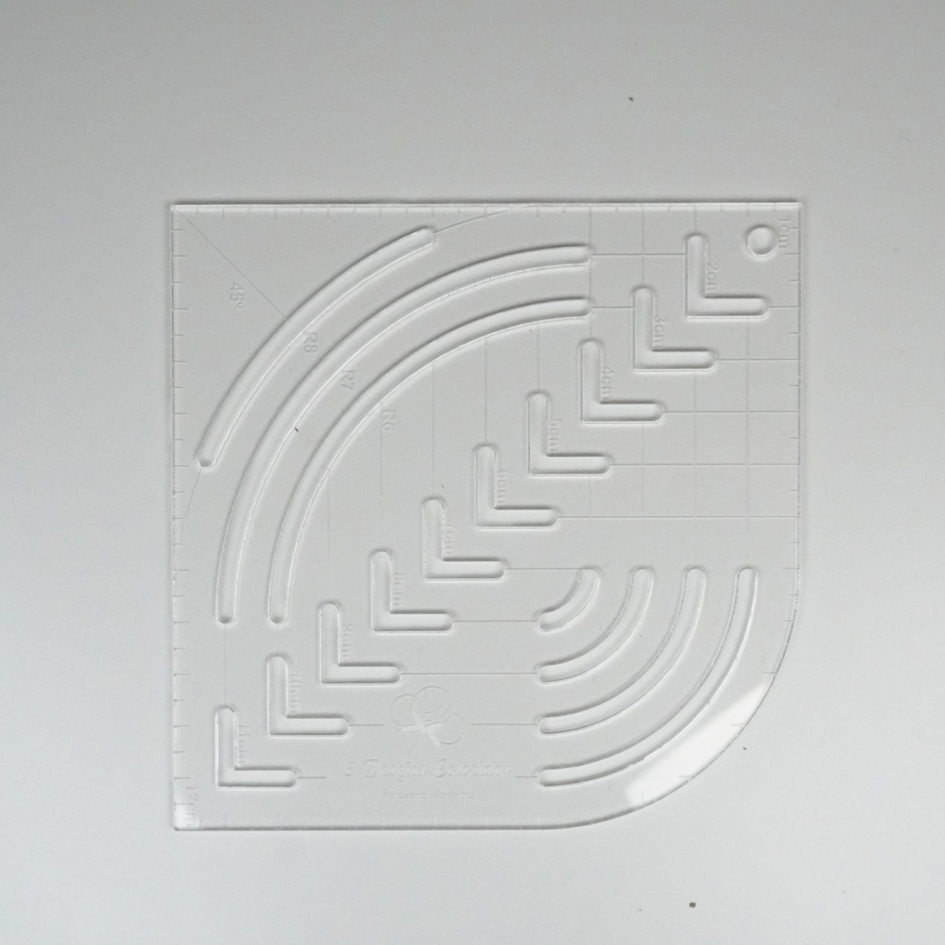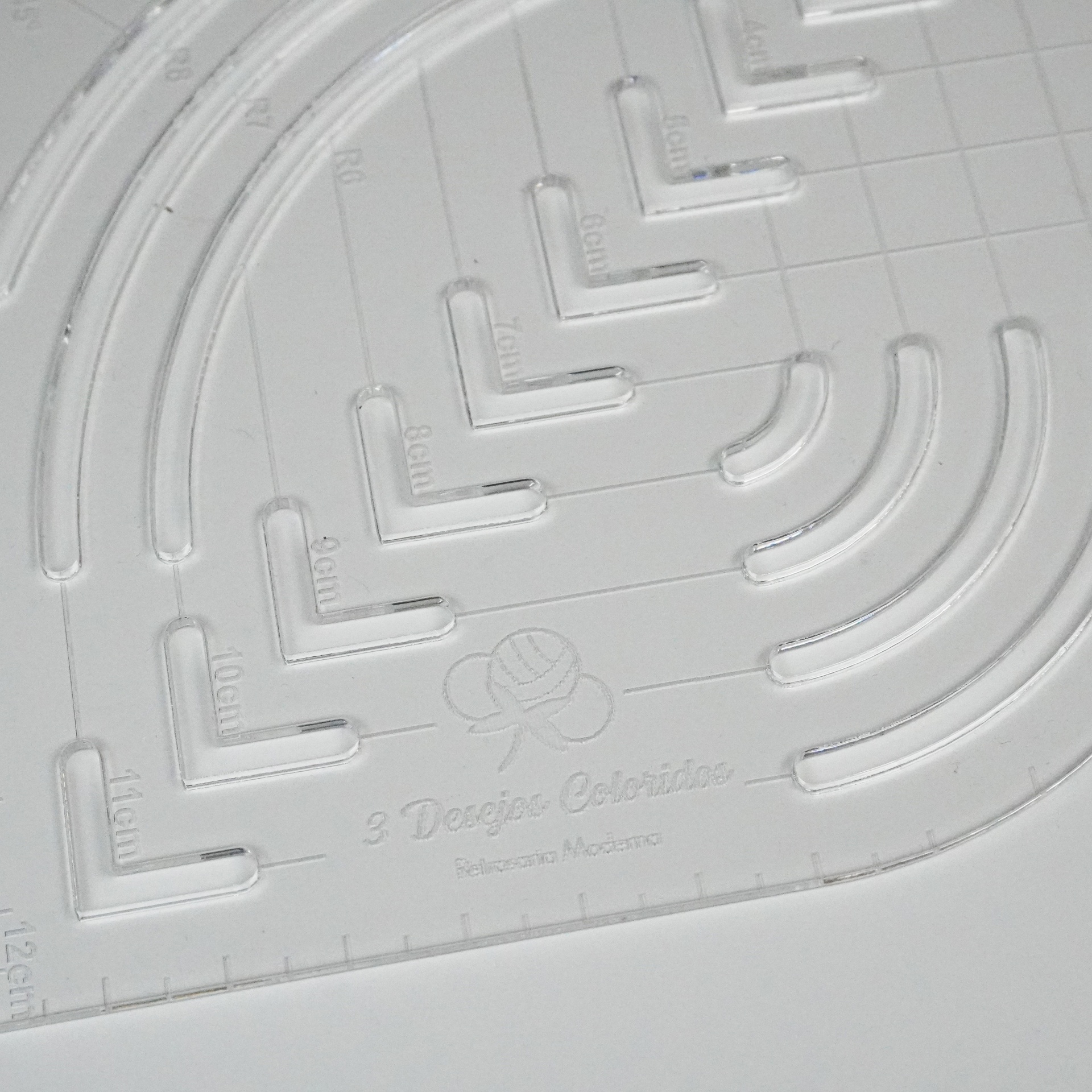 Poderá ser utilizada com o cortador rotativo e base de corte, possui marcações e ranhuras, serve essencialmente para marcar cantos e curvas.