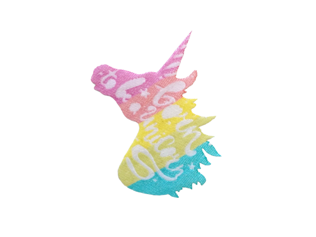 FG - Emblema Tecido Unicórnio Cabeça Colorida Frases