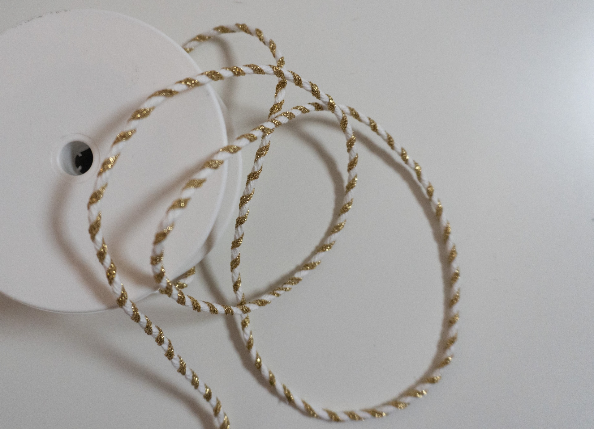 Cordão de algodão com fio dourado enrolado de 3mm.