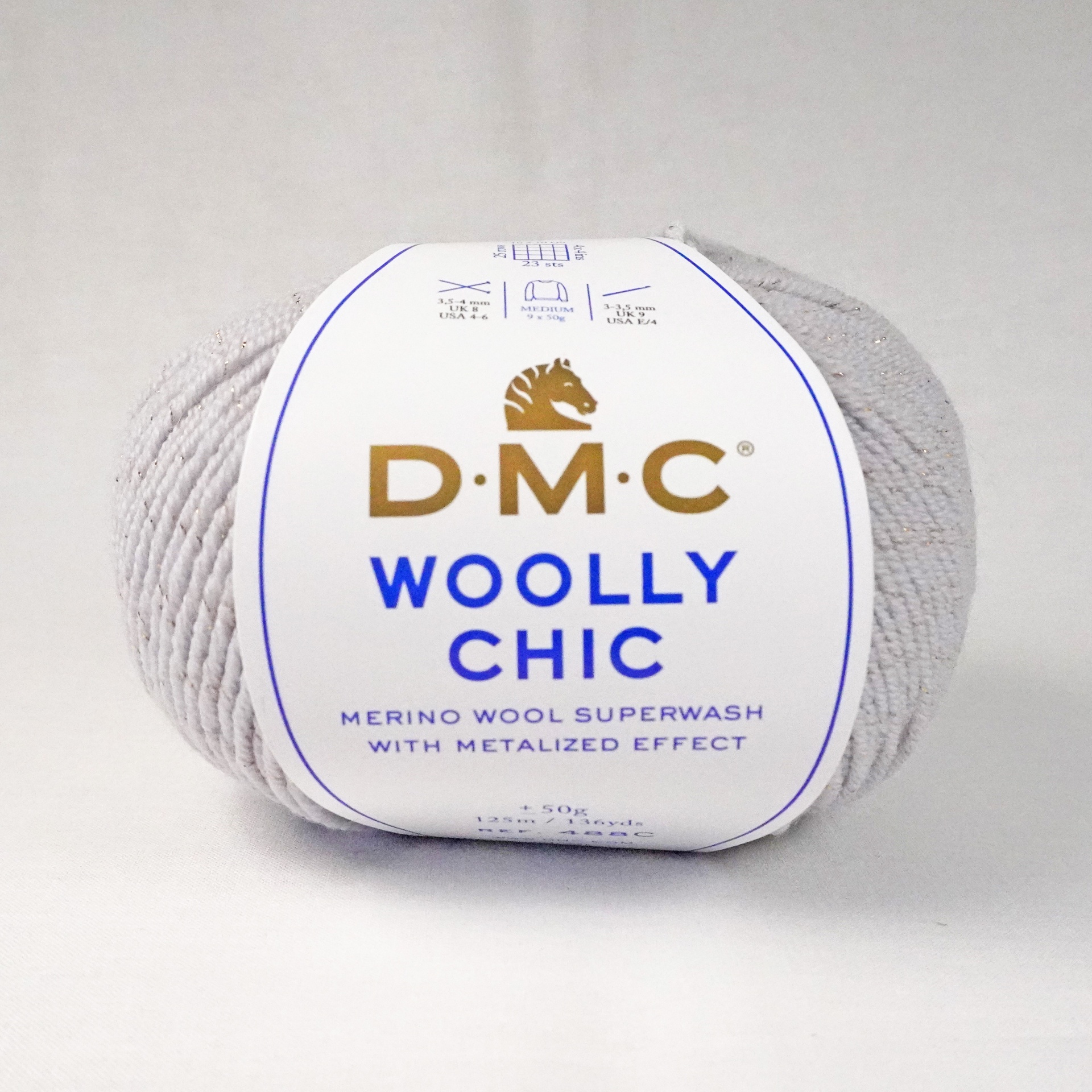 DMC Woolly Chic – Lã Merino Superwash com Brilho Metalizado O fio DMC Woolly Chic é uma lã merino superwash macia e elegante, com um delicado efeito metalizado que dá um toque de brilho às suas peças. Ideal para tricô e croché de roupas, acessórios e projetos de moda handmade.